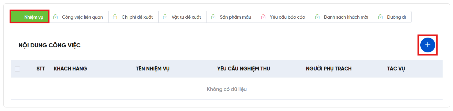 Dùng để phân loại nghiệp vụ, giúp lọc báo cáo và quản lý KPI theo nhóm. Được thiết lập tại phân hệ quản trị (Quản trị => Cài đặt => Thêm mới => Nhóm công việc) |