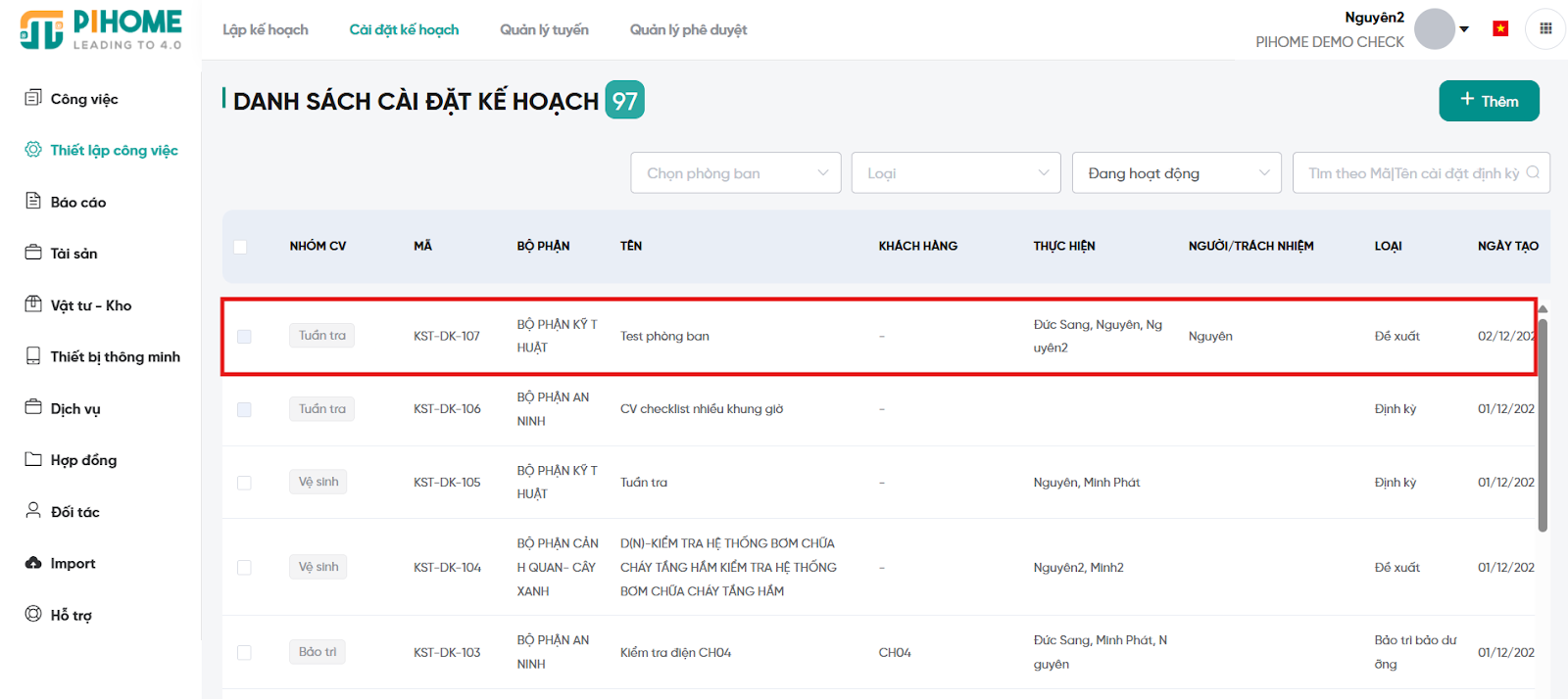 Cài đặt kế hoạch vừa tạo sẽ xuất hiện tại danh sách cài đặt kế hoạch.