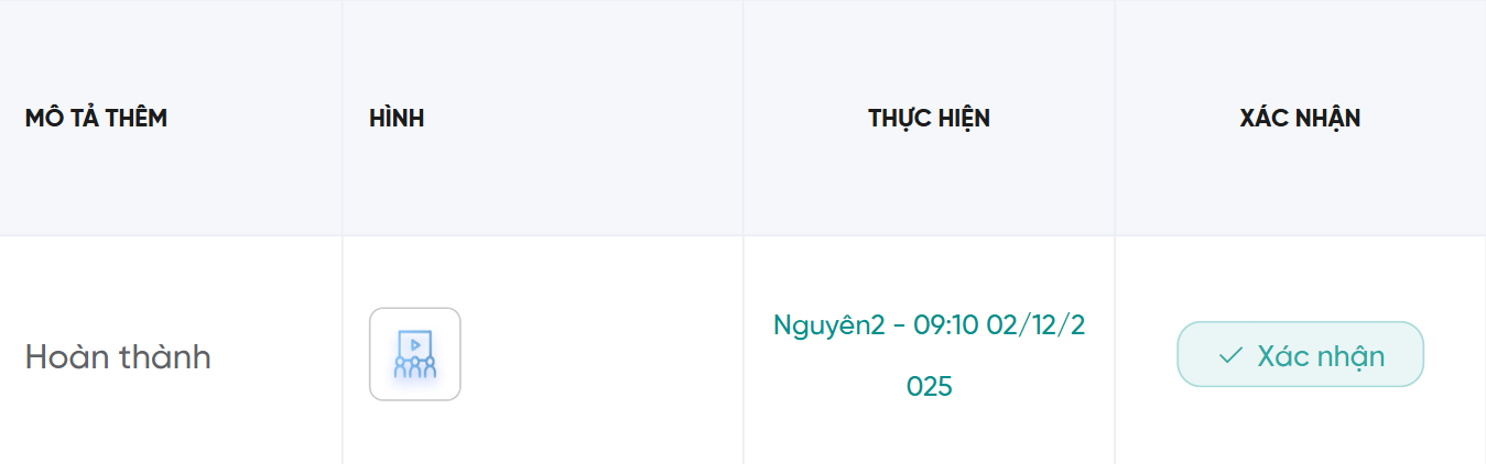 Thông tin sau khi chọn: Tên người xác nhận – ngày giờ xác nhận. |