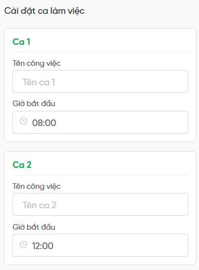 Ví dụ: Nếu chọn số lần lặp lại là 2 => Sinh ra 2 công việc. Đặt tên và giờ bắt đầu cho từng ca. |