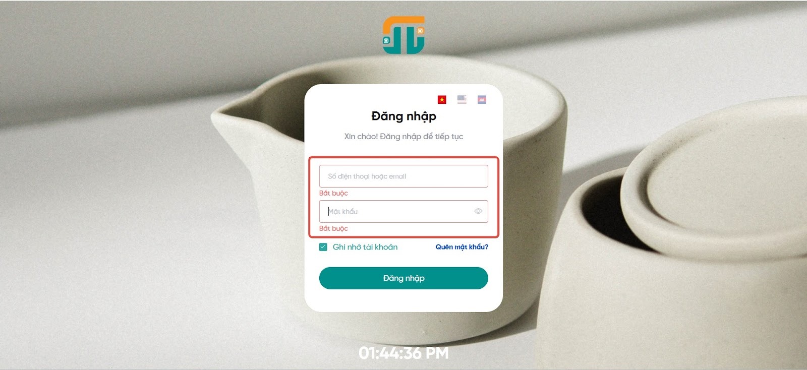 Ngay khi truy cập, hệ thống sẽ hiển thị màn hình “Đăng nhập”, cho phép người dùng nhập thông tin tài khoản.