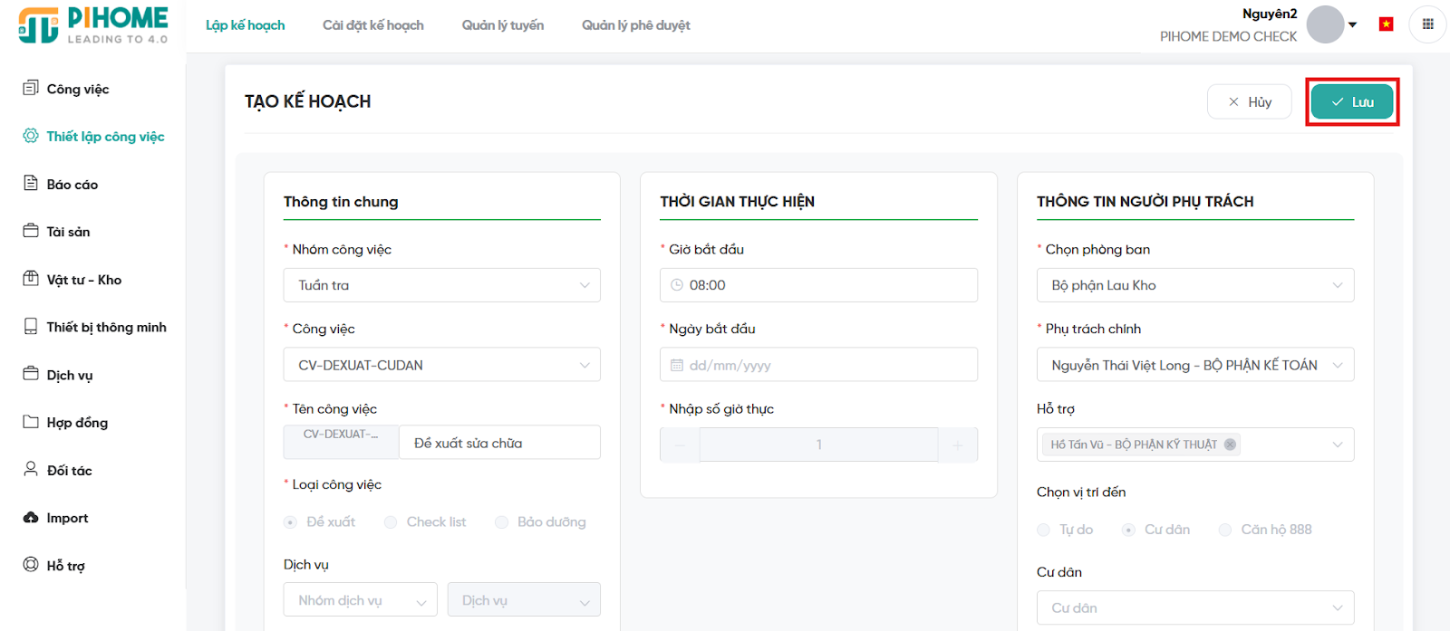 Đây là bước chuyển từ mẫu kế hoạch sang công việc thực tế cho nhân viên thực hiện. Chức năng Lập kế hoạch cho phép BQL: