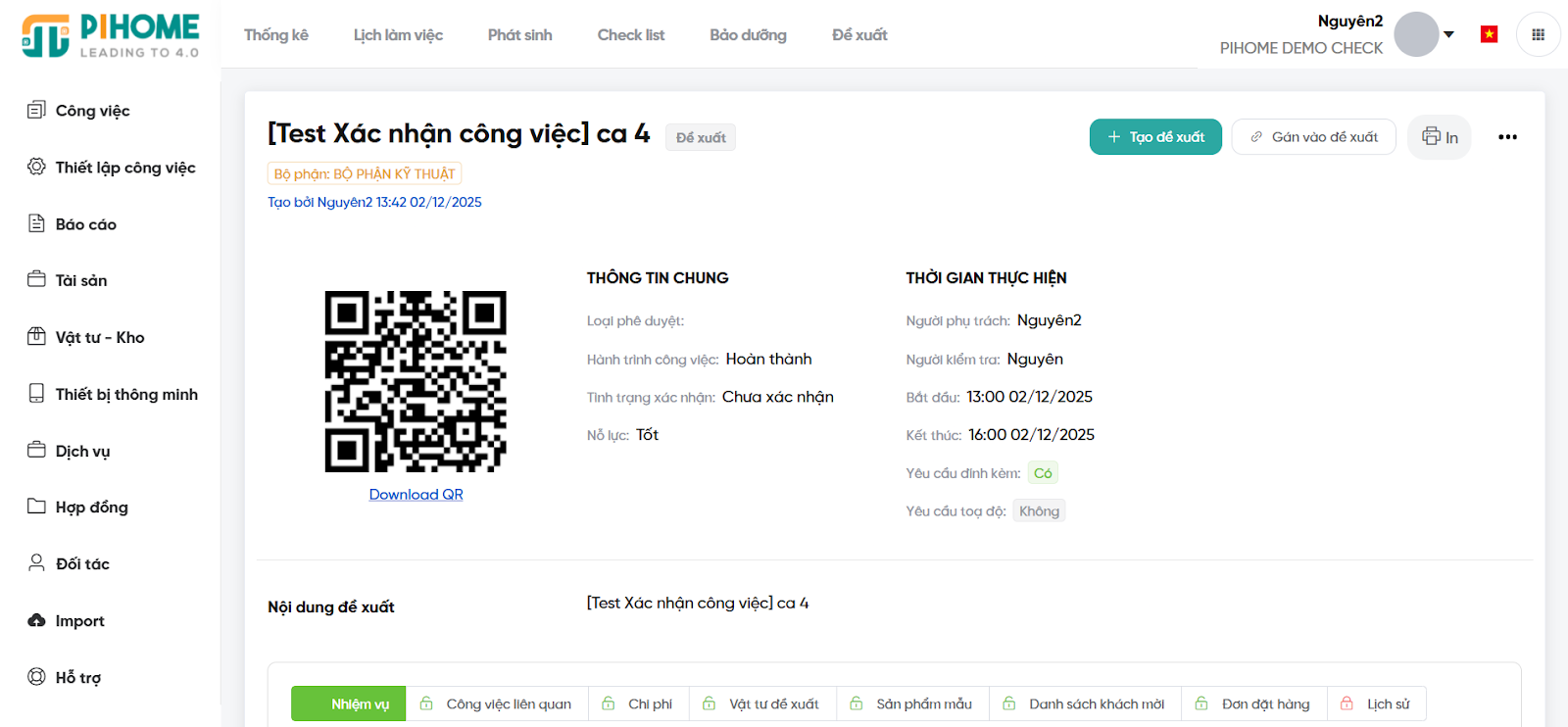 - Tự động sinh công việc theo chu kỳ (ngày/tuần/tháng) hoặc theo khoảng thời gian xác định.