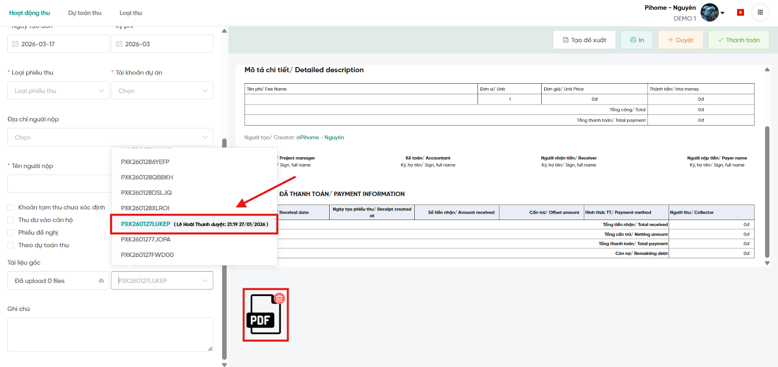 3. Nâng cấp phiếu thu và phiếu chi