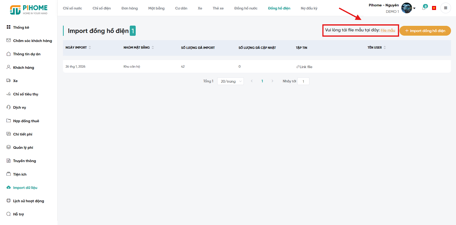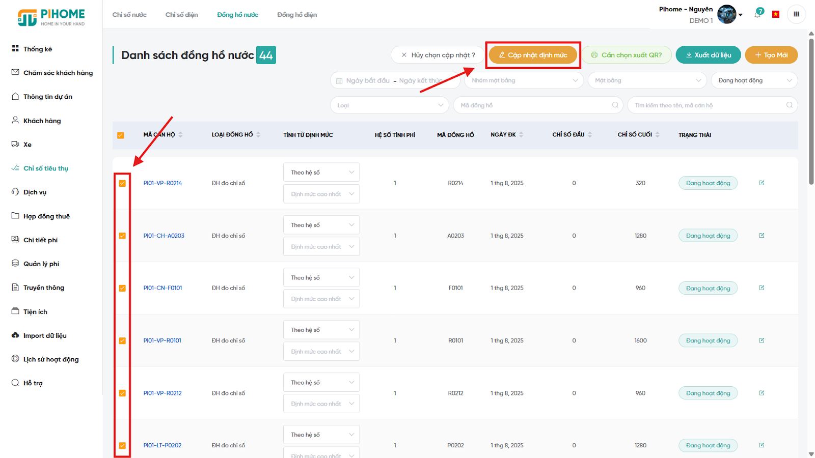6. Chức năng cập nhật nhanh hàng loạt đồng hồ điện/nước