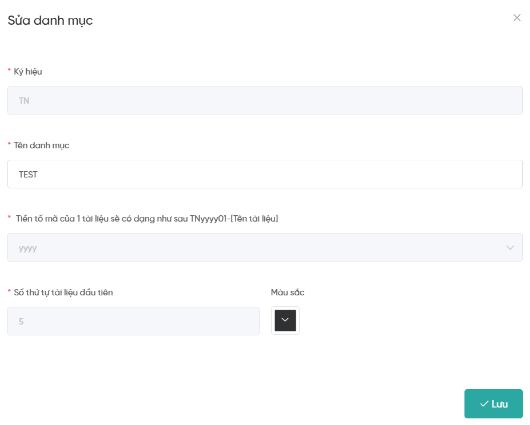 Màn hình sửa danh mục tài liệu