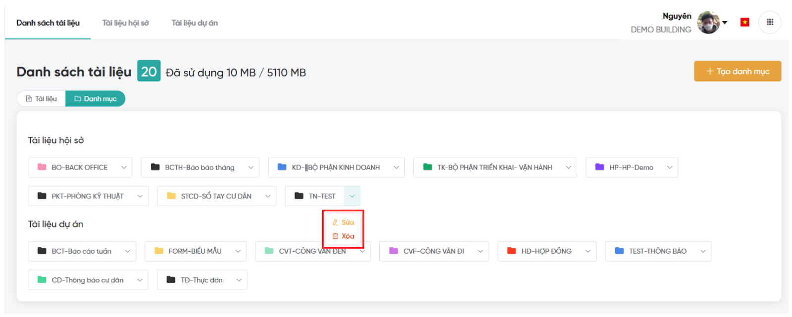 - Có thể Sửa/Xóa danh mục sau khi tạo.