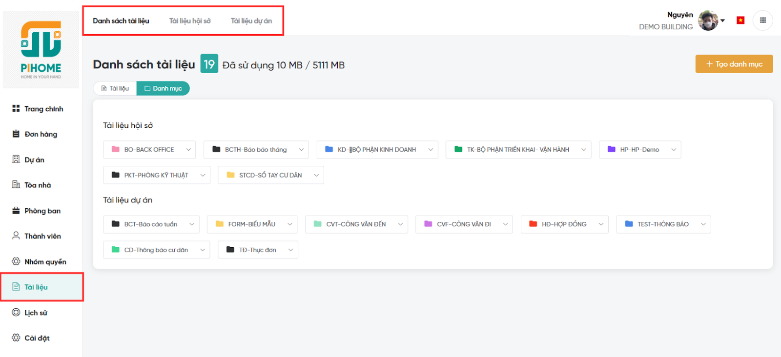 2.2. Thao tác với tài liệu (Hội sở/Dự án)
