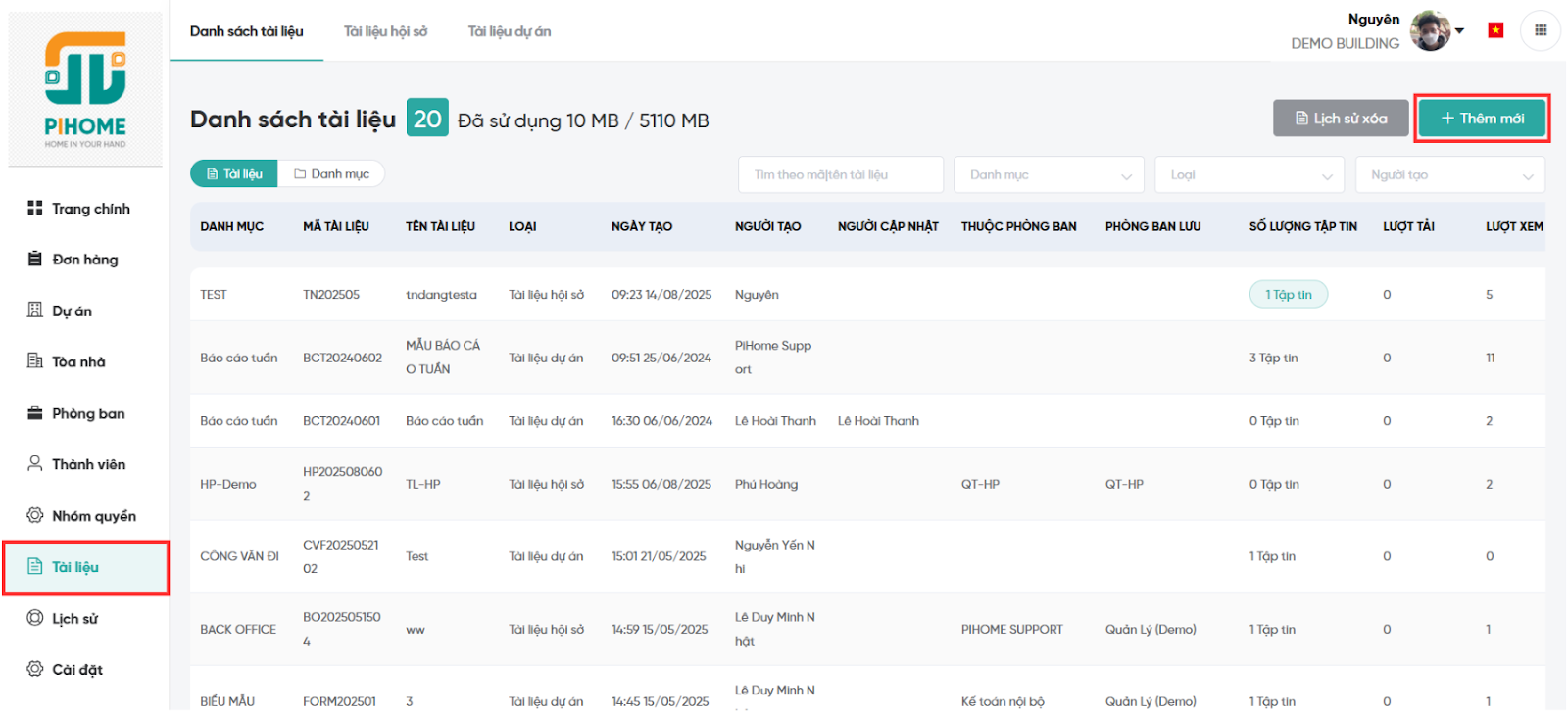 - Danh sách tài liệu: Danh sách tổng hợp tất cả tài liệu để tra cứu nhanh chóng, hỗ trợ quản lý tổng thể.