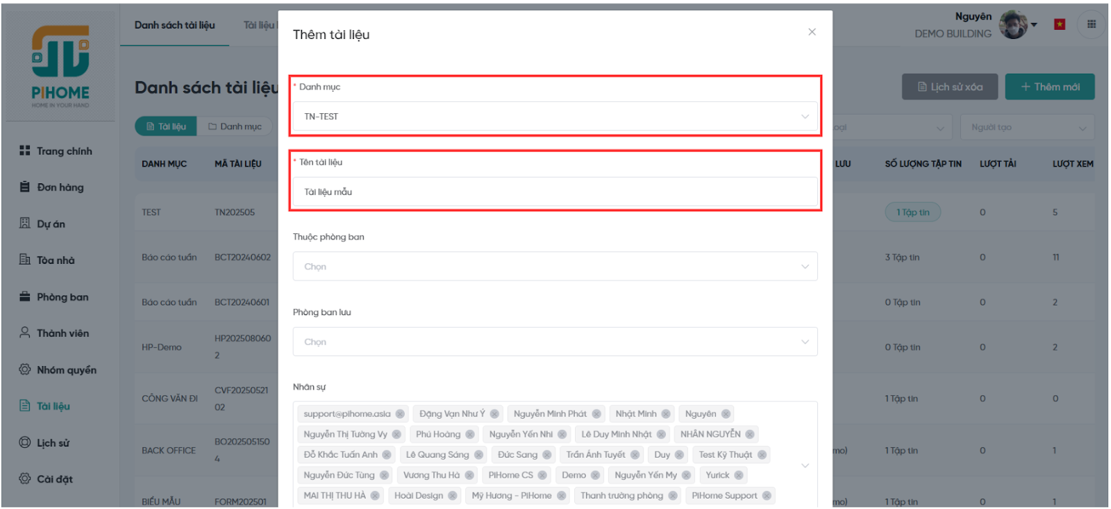 Bước 2: Điền thông tin tài liệu (Danh mục, tên tài liệu …).
