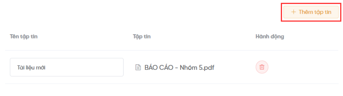 Bước 3: Nhấn "Thêm tập tin" để tải lên file.
