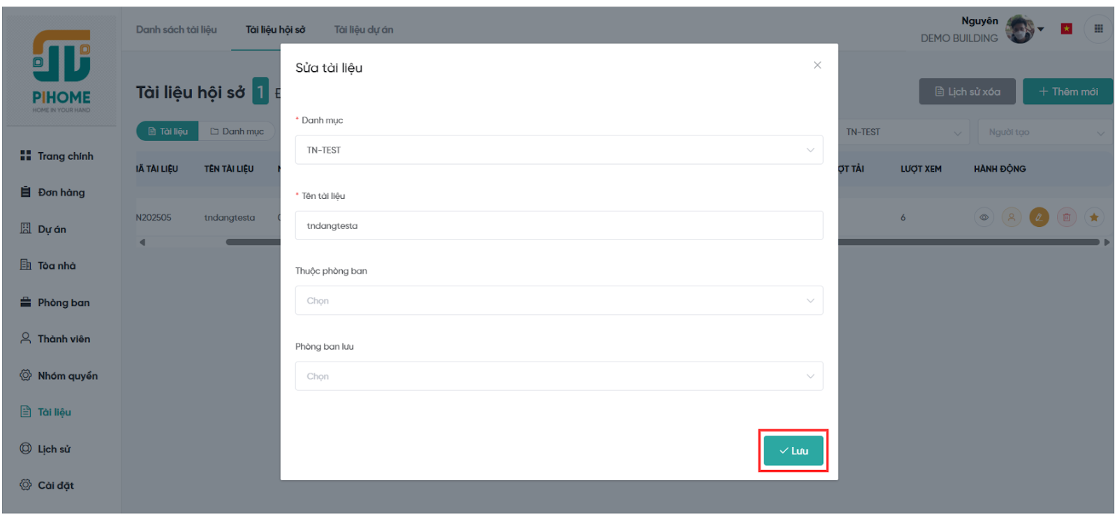 Bước 4: Nhấn "Lưu" để áp dụng thay đổi, giúp tài liệu luôn cập nhật với tiến độ dự án.