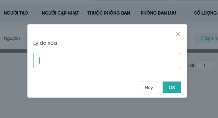 Màn hình nhập lý do xóa tài liệu