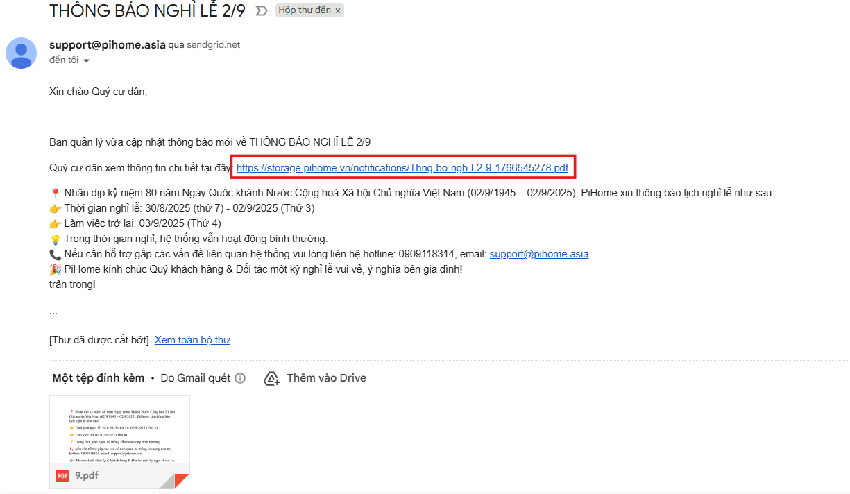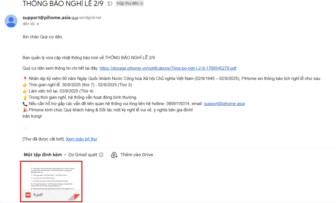 - Tệp đính kèm: email thông báo cư dân nhận được sẽ hiển thị file dưới dạng đính kèm tệp