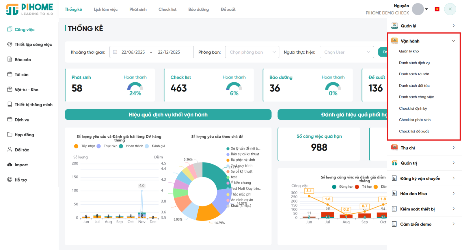 Phân hệ vận hành sẽ quản lý các thông tin liên quan đến:
