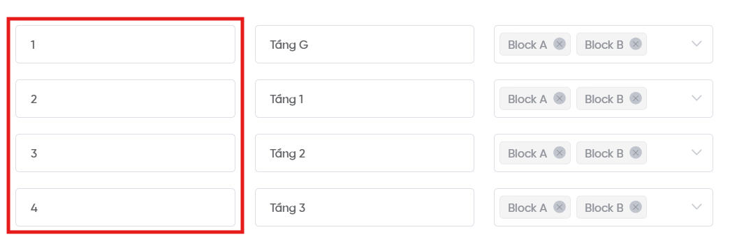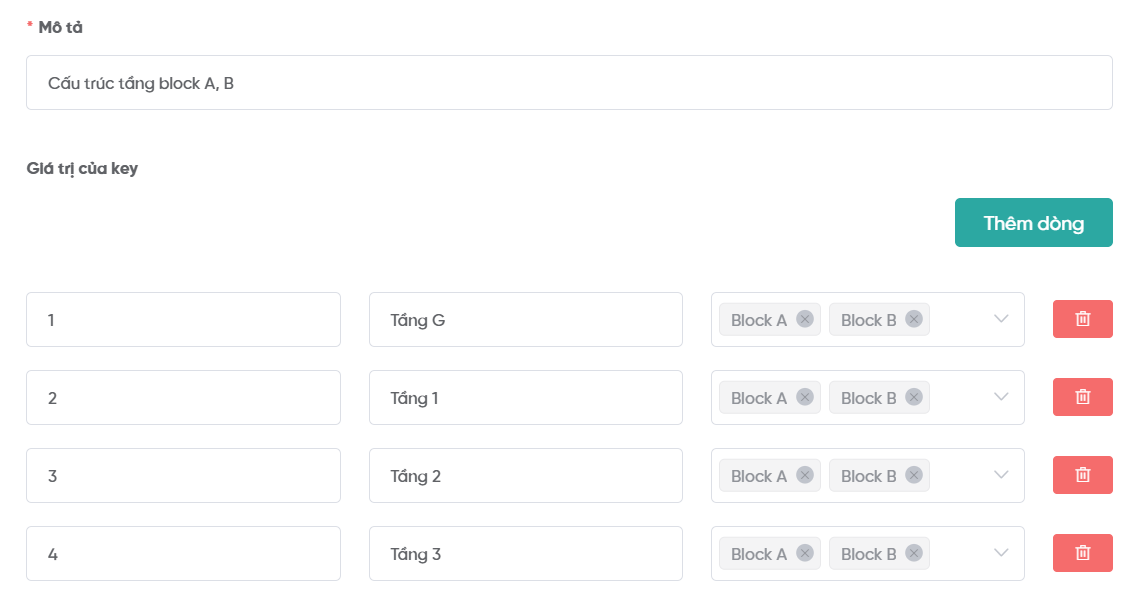 - Mã: Người dùng điền mã cho từng tầng, ví dụ: 1, 2, 3, 4…