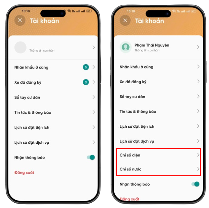 Thiết Lập Menu Chỉ Số Cho App Cư Dân