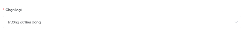 - Loại: Xác định kiểu dữ liệu của trường. Hệ thống hỗ trợ nhiều loại trường như: Text, Text Area, Number, Phone, Email, Date, Dropdown… Việc chọn đúng loại trường giúp hệ thống kiểm soát dữ liệu nhập vào chính xác hơn.
