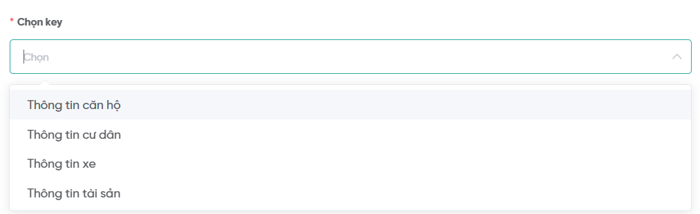 Bước 3: Tại mục “Chọn key”, chọn thông tin cần thêm trường động.